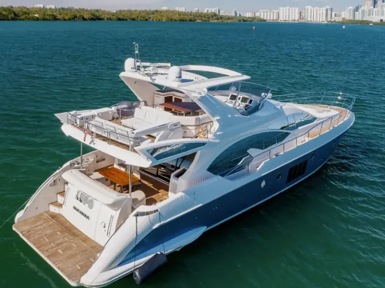 Alquile este elegante yate de 70 pies con embarque en el río Miami y viva una experiencia náutica inigualable. Nuestro Azimut combina lujo, diseño sofisticado, comodidad...